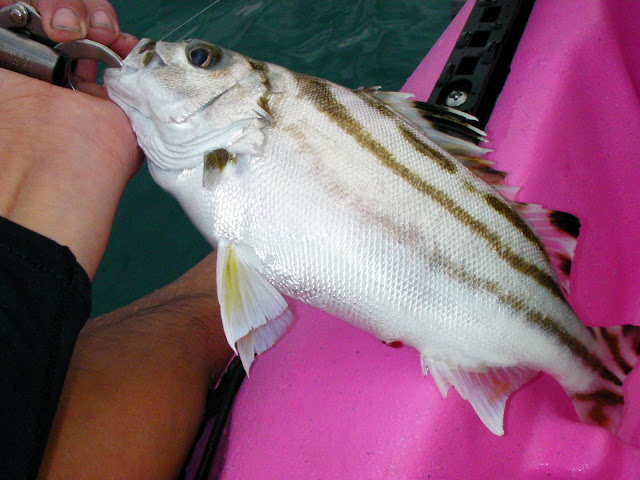 這期間兒子又中了幾次但都被脫鉤了 其中一條巴啷已釣起來了
