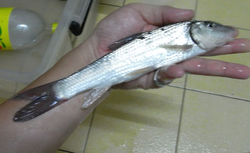 7 c) b' O1 A9 j- N% b) m5/15跟朋友懷著鍛鍊體力修養身心的心情到大甲溪搞搞.結果3個半小時(1.5小時)過去魚網都還沒沾到水.後來索性由激流轉戰瀨區結果釣到大甲溪新的移民3 h+ b8 ^8 _$ A$ }7 A
