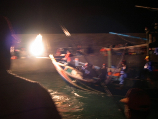 這傳統的捕魚方式再草里港一帶還有 其他地方就不知了 我在7.8年前被這種捕漁法嚇到 以為是在炸魚 後來才得知 這是傳統的補魚法 對環境跟魚的傷害不大 不過在現在來講 這種補魚法只能免強貼補漁民 畢竟瓦斯帳價很多 還有油也很貴 再加上聚光燈補魚法 這種傳統捕魚法真的是賺不到啥錢嚕
